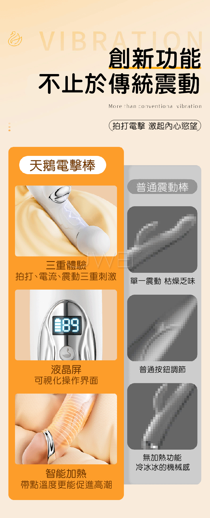 天鵝.8頻拍震+8頻微電流電擊 深層高潮仿真龜頭加溫震動棒