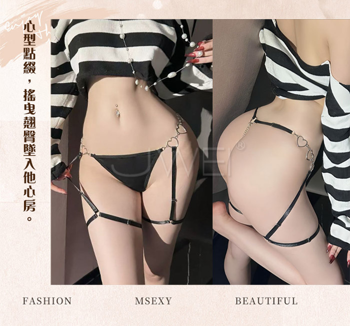 極夜誘惑.愛心鏈條綴腰吊帶低腰丁字褲【黑】
