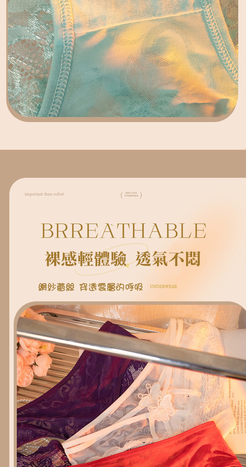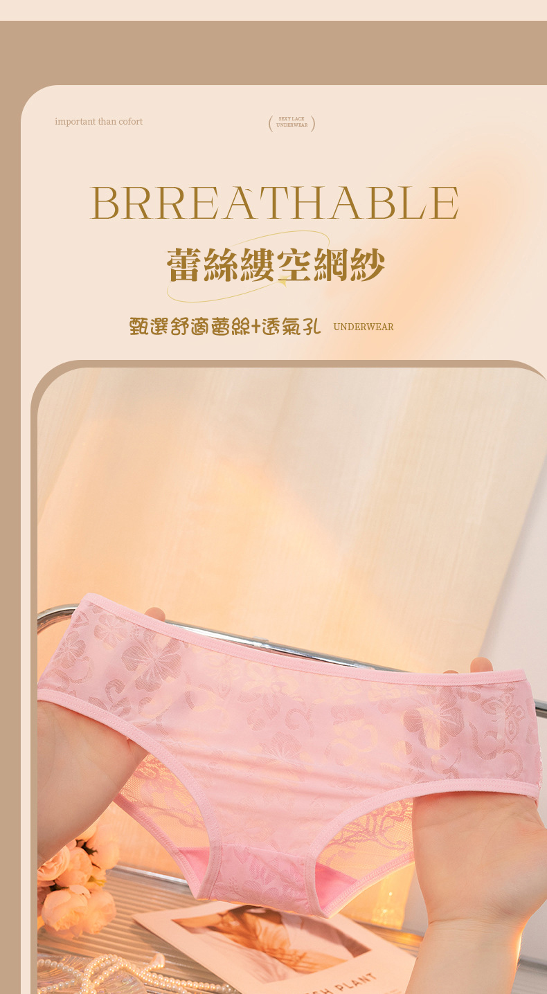 新款性感屁股蛋 半透蕾絲8色性感內褲 每天都讓妳穿不一樣的內褲, 嬌小體型到最大65kg都可以穿著 純棉底檔 透氣呼吸 呵護您的私密處! 8種顏色可挑選、舒適又不失性感 型號:8216 材質:80%棉綸+20%安綸 底檔:100%純棉 尺寸:L碼(50~65KG) 特色:提花、透氣、性感
