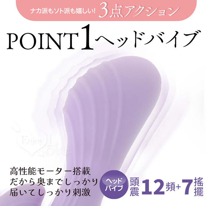 ►您現在的位置:首頁>日本NPG.やわらかバイブ 肌感触 12頻頭震+7搖擺+10副震多功能柔和按摩棒-紫