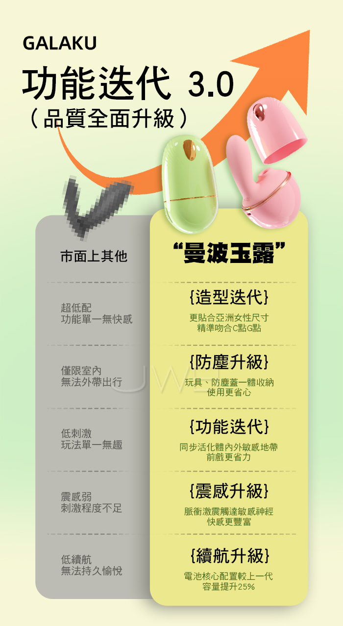 ►您現在的位置:首頁>GALAKU.曼波玉露 10頻靈指摳動+大口吮吸 雙潮喚起智能遠控變頻跳蛋【綠色】