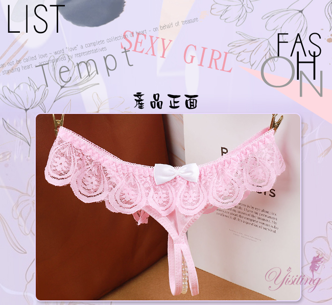 | 完美挑逗!蕾絲花邊露屁屁串珠開襠低腰褲﹝粉﹞