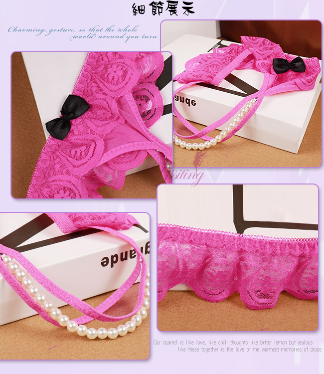 ►您現在的位置:首頁>完美挑逗!蕾絲花邊露屁屁串珠開襠低腰褲﹝粉﹞
