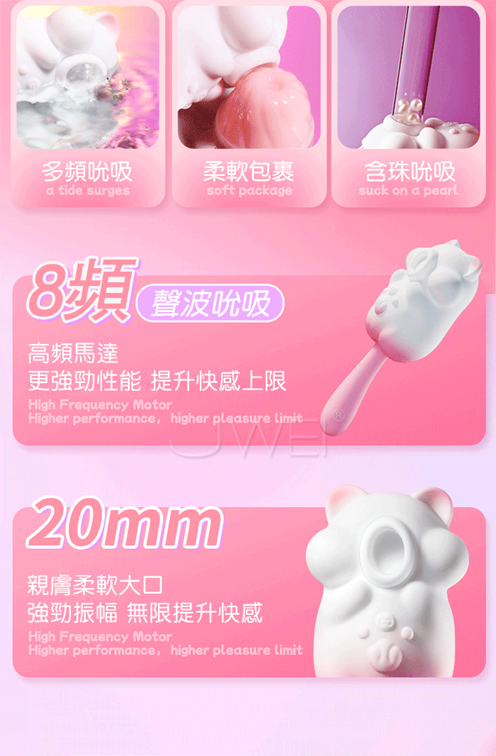 8頻秒潮吮吸,從入門到進階,吮吸新手無痛入門、絲滑進階,温柔包裹蜜豆