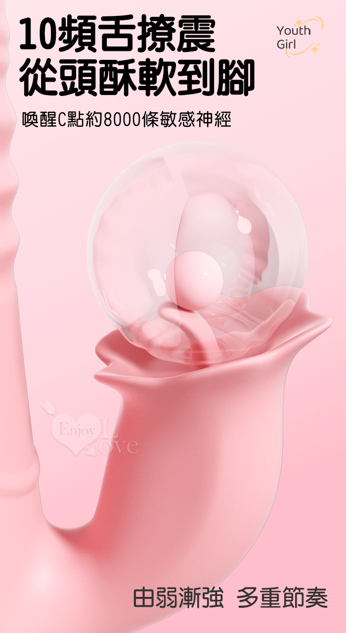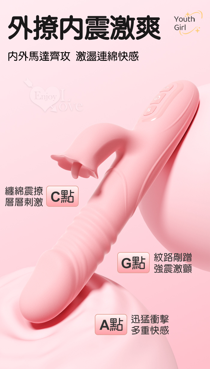 勞樂斯.愛潮~舌吻伸縮多功能按摩棒﹝10頻伸縮+10頻舌撩震+USB便捷充電﹞