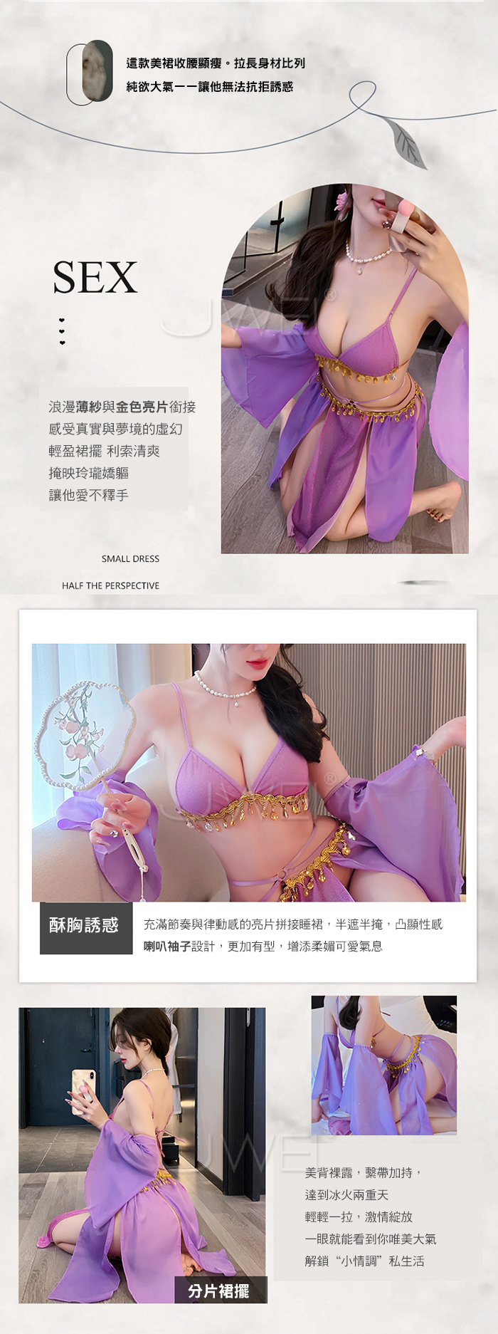 ►您現在的位置:首頁>情定西域.異域風情復古亮片拼接裙擺角色扮演服-紫色【胸罩+短裙+T褲+袖子*2】