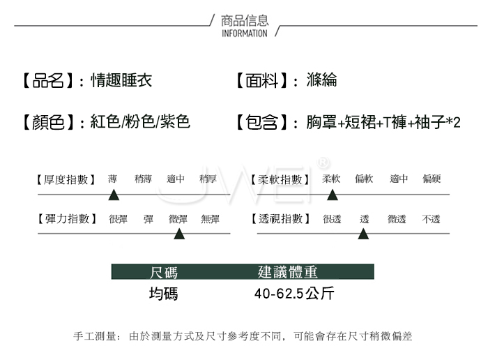 ■內容物:胸罩+短裙+T褲+袖子*2