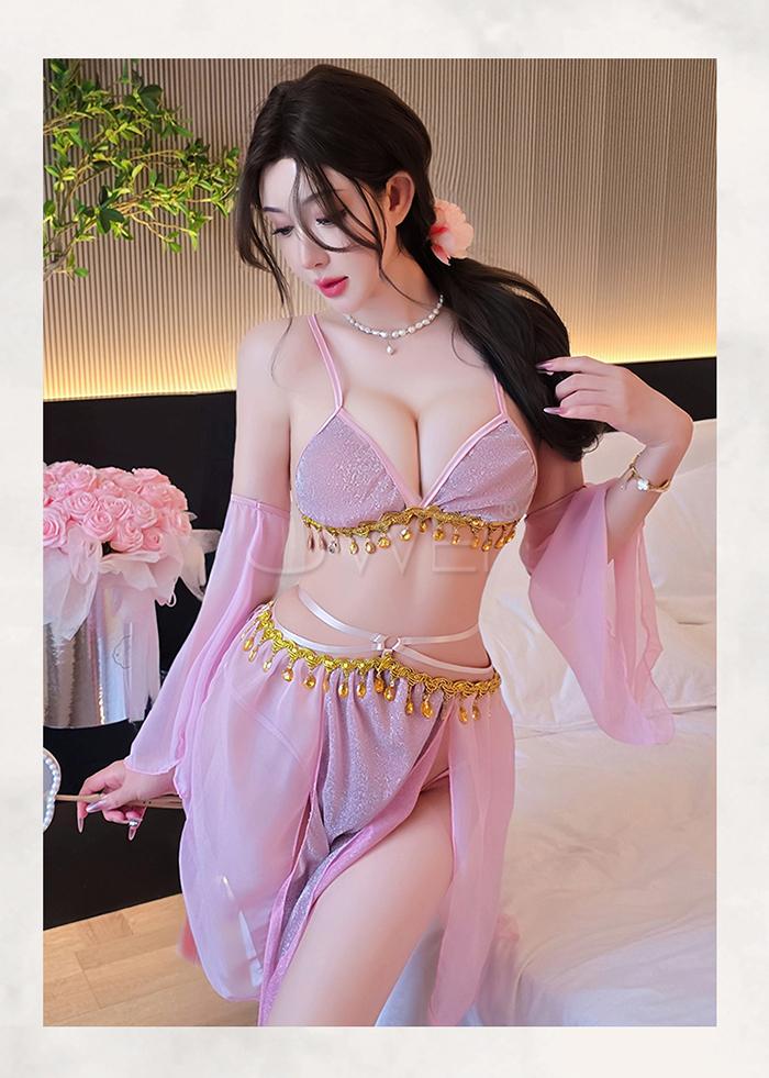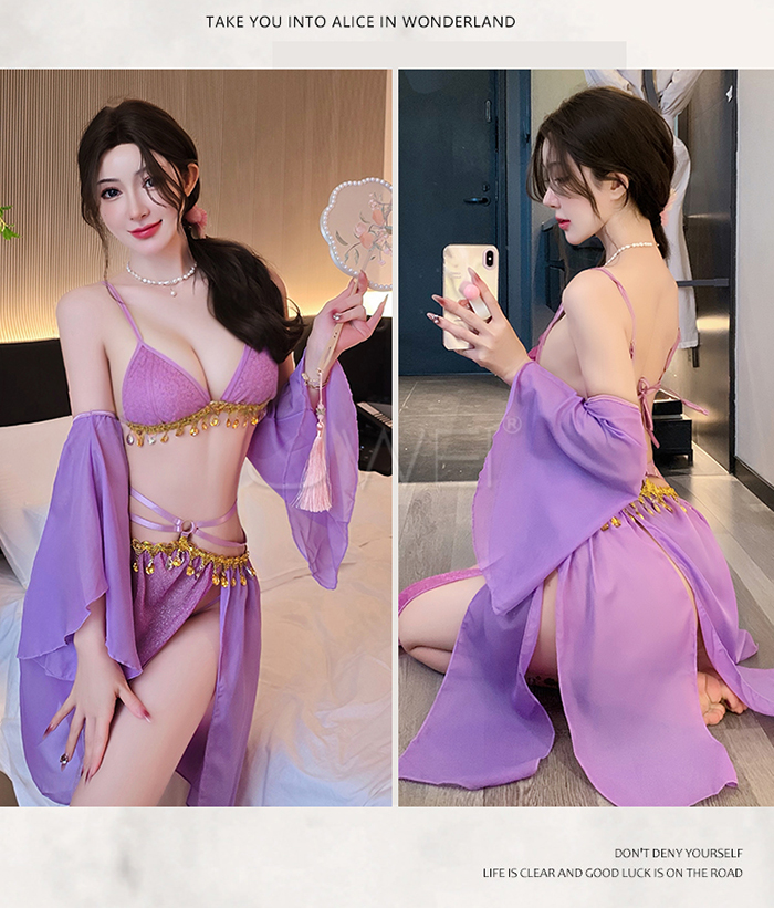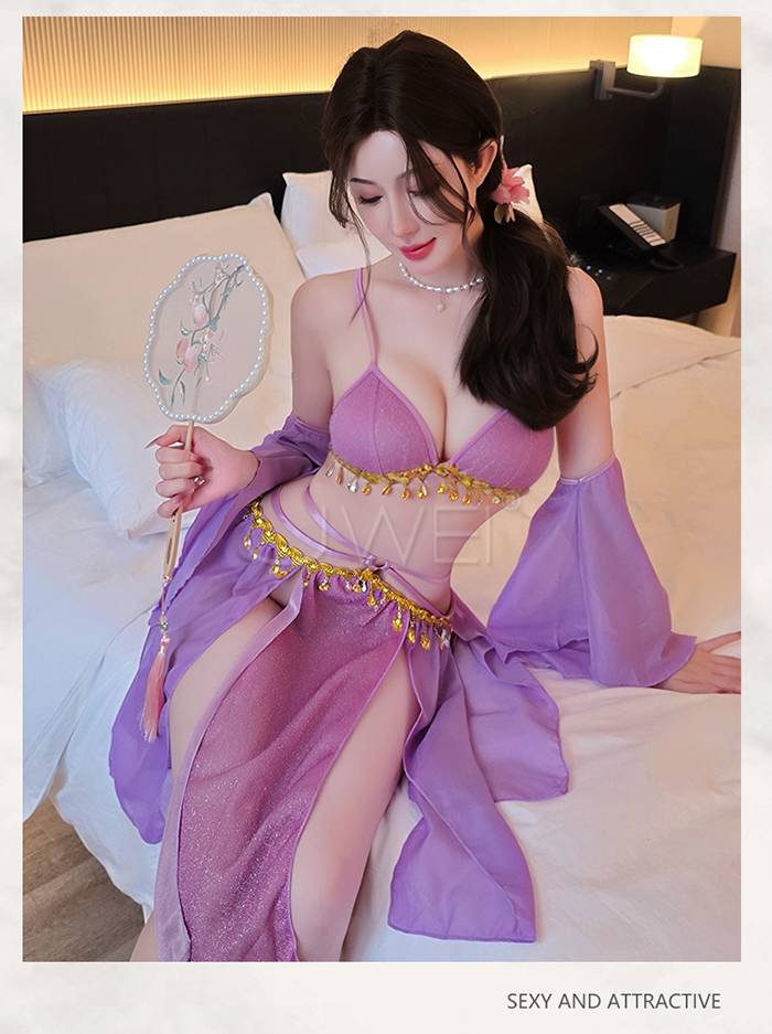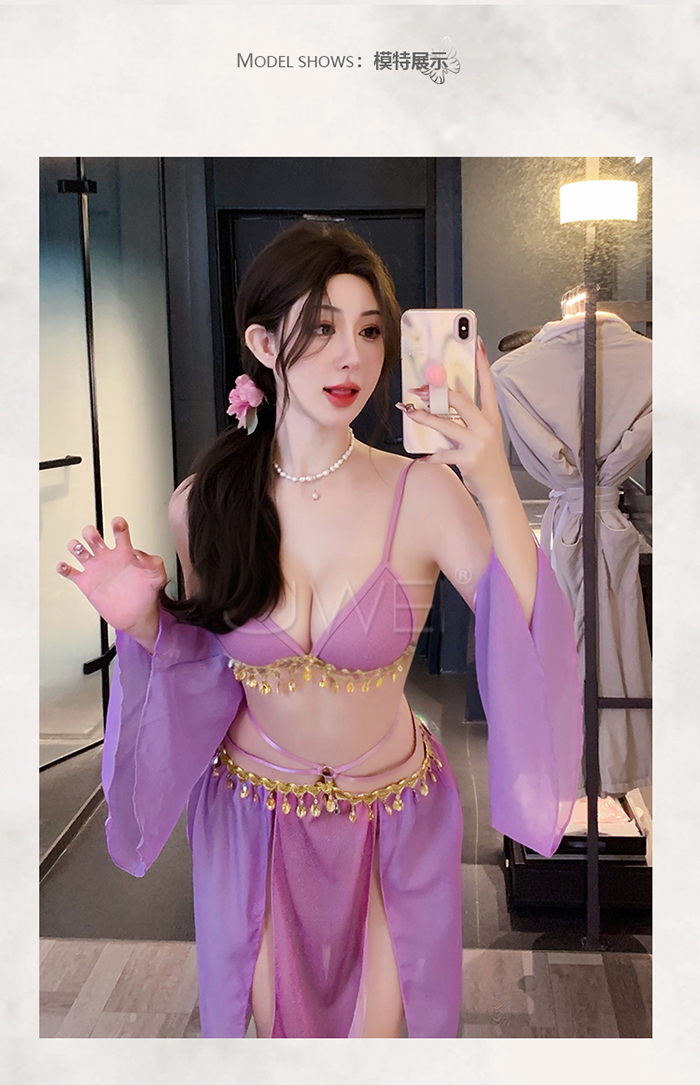| 情定西域.異域風情復古亮片拼接裙擺角色扮演服-紫色【胸罩+短裙+T褲+袖子*2】