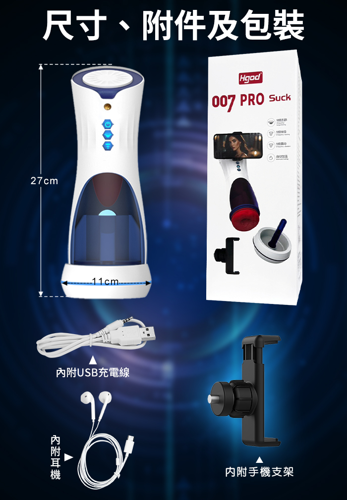 ►您現在的位置:首頁>Hgod 007-II 旗艦版 ‧ AI新智能自動舌舔+吞莖吮吸+分體加熱快感電動飛機杯﹝9頻收縮吸吮X9頻舌擺舔+淫聲耳機+手機架﹞