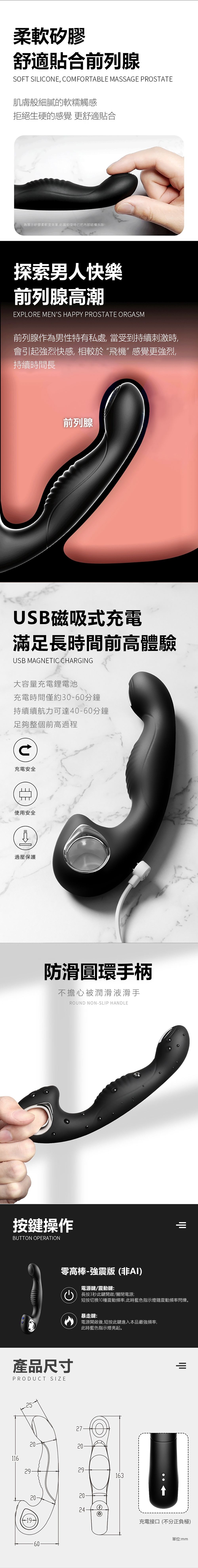 使用說明:電源鍵:長按3秒,開/關機;短按,切換震動頻率。