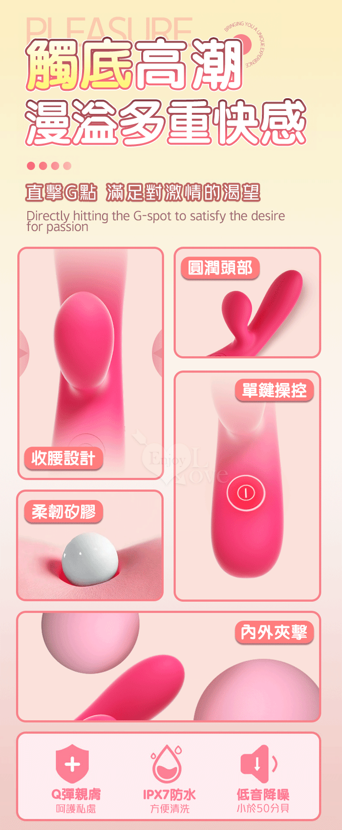 PLEASURE 西婭 ‧ 雙強震動10頻撩撥入體內外刺激G點按摩棒﹝親膚矽膠/收腰設計/15微翹角度﹞洋紅