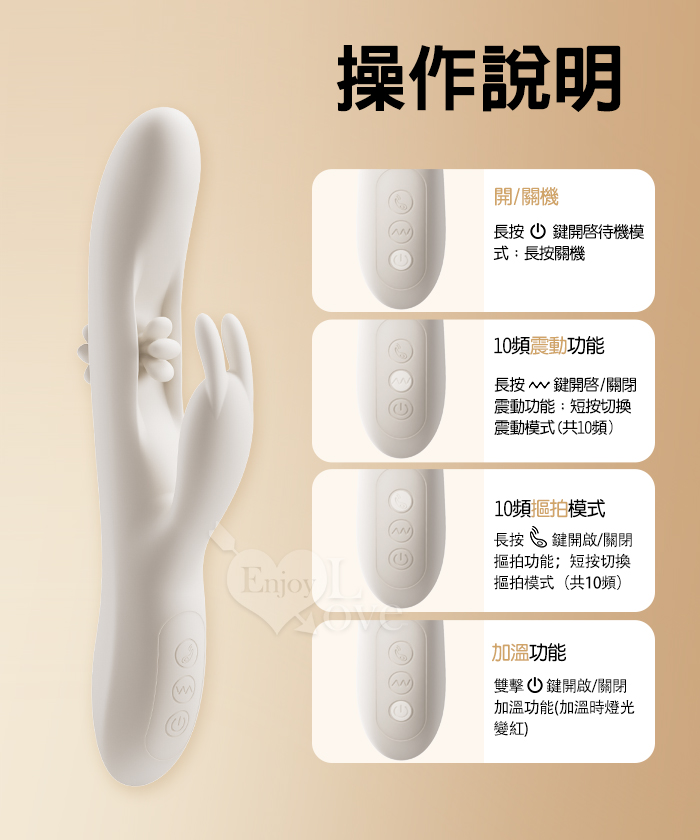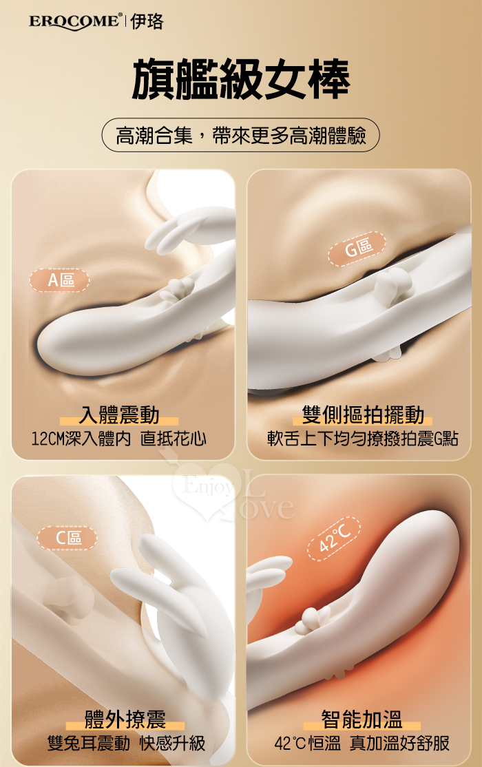 ►您現在的位置:首頁>EROCOME伊珞.Flying Bunny 飛行兔 10x10頻飛輪軟舌兔耳震動拍打雙震加溫3合1按摩棒