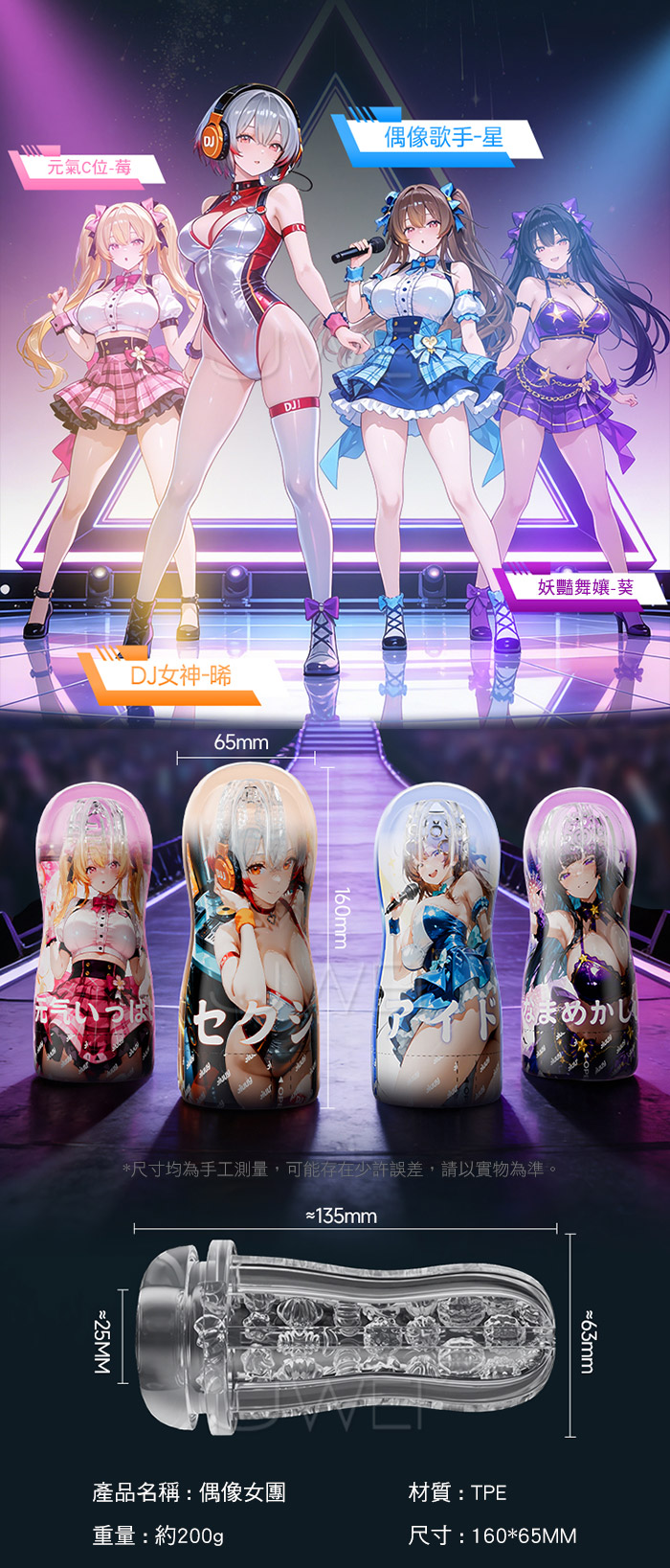 偶像女團系列飛機杯採用TPE軟膠材質,更加貼近真人成覺