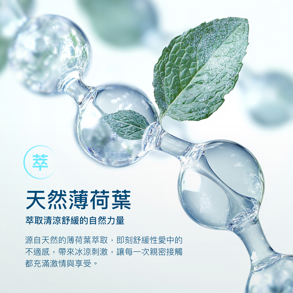 冰激潤滑液,冰點到沸點的極致碰撞,冰中帶火感受每一滴的刺激,揭 開冰冷表面下,令人血脈噴張的火辣,冰激凍感,感受每一寸肌膚上的 冰熱衝擊,冰火感官盛刻,只為了最後的那一刻熱情釋放,激涼冰珠滴 在沙漠中焦乾的土壤上,激發出最原始的渴求,讓你欲罷不能,感受另 一半的濕緊包覆!