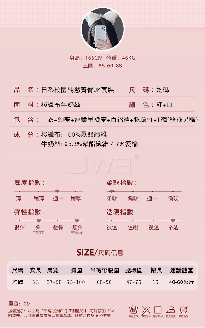 ■內容物:上衣+領帶+連腰吊襪帶+百褶裙+腿環*1+T褲