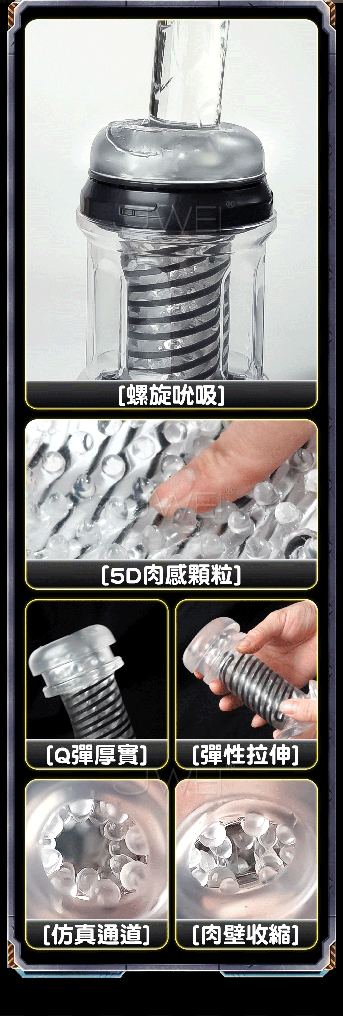 特有的扭簧旋轉結構,在每一次壓縮回彈中產生強烈的旋吸式快感體驗